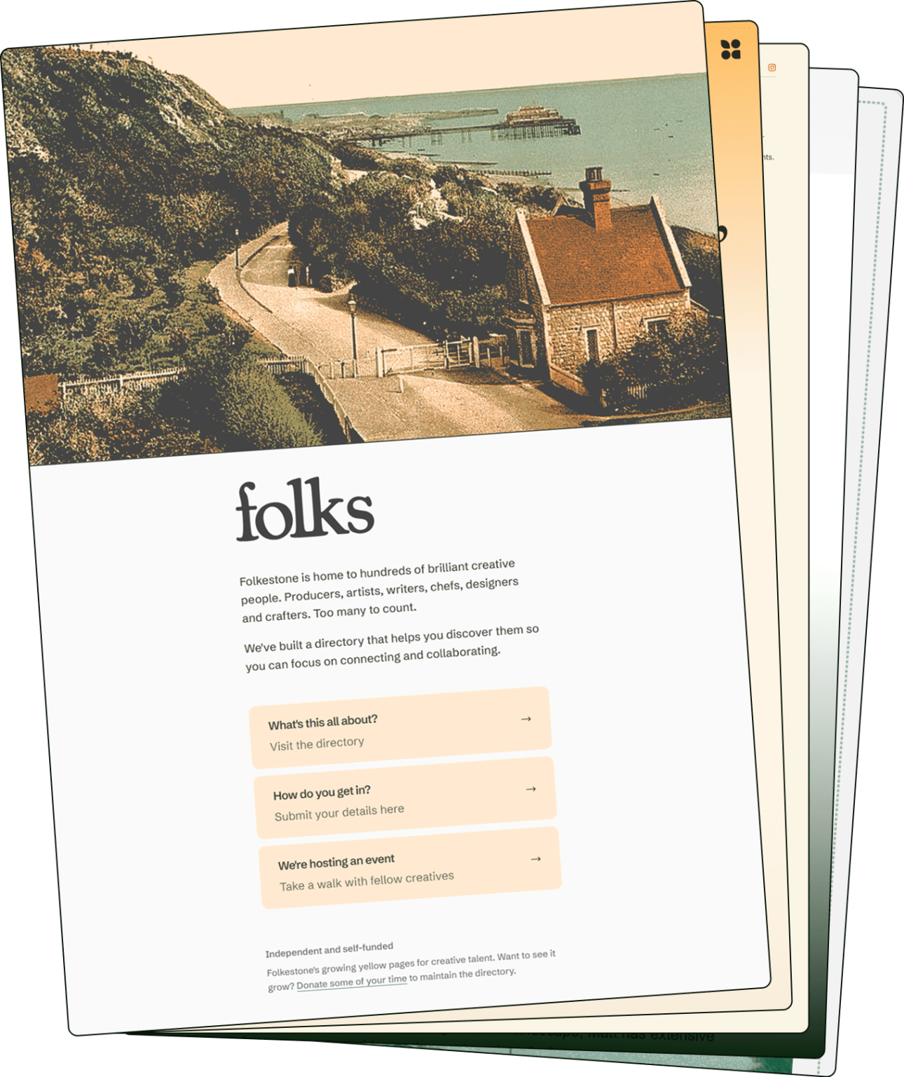 I'm a designer, marketer, and cultural worker based in Folkestone, Kent. I spent the best part of a decade helping to platform emerging talent. Now I partner with small businesses, solopreneurs and artists to work both in and on their digital marketing.